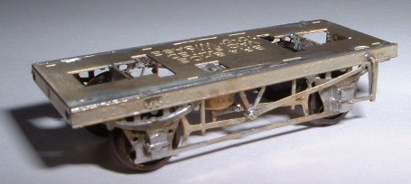 The underframe consists of a central floor unit, which carries the W-irons. The brake gear is a second component which aligns on slots in the floor. To this basic structure is added solebar (double thickness) overlays, and axle boxes (triple thickness).