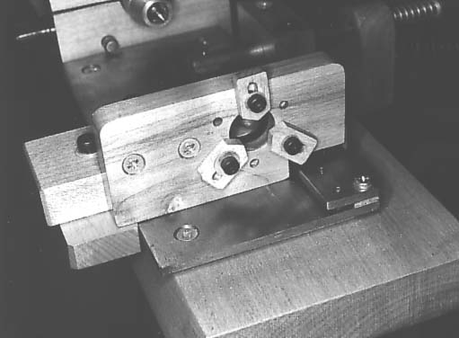 The depth stops and feed control provide measured repeatability. In principle, either could be provided with screw adjustment, though I will only describe screw adjustment for the feed control. By running the turning tools against the stops a repeatable cut is obtained. The feed control enables cylinders to be turned, and, optionally, tapers or cones.