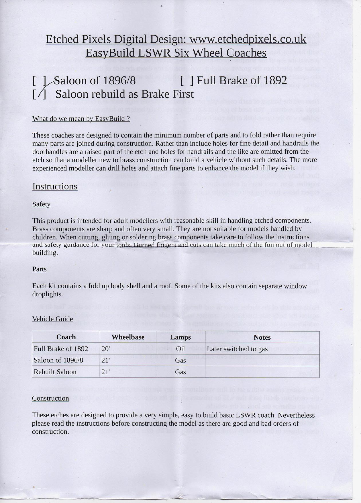 This is lists instruction sheets for the Etched Pixels and Ultima models ranges of kits, please use right-click and "save-as" to keep a copy on your hard drive, rather than re-visiting this page.
