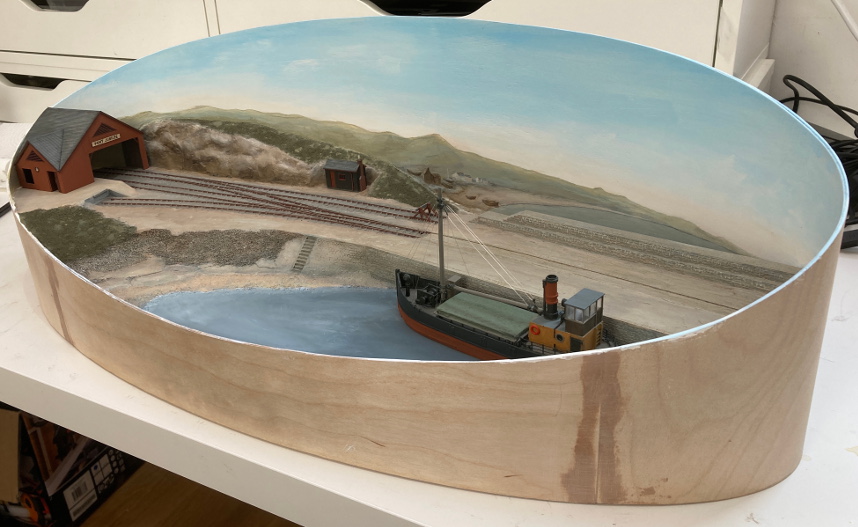 An elliptical layout/diorama built for the 2mm Scale Association Diamond Jubilee Layout Challenge. It represents a thoroughly fictitious Scottish coastal terminus in the Edwardian era. I can't be sure whether it is on the east or west coast.